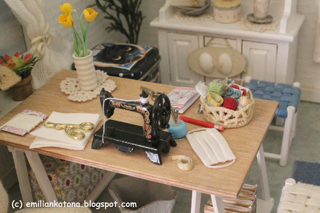The table is made of beech, too. The chair is from mothers sewing room. But Eetu will get a new chair later.